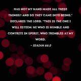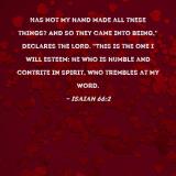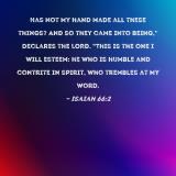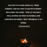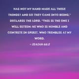Has not My hand made all these things? And so they came into being," declares the LORD. "This is the one I will esteem: he who is humble and contrite in spirit, who trembles at My word.