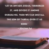Let us invade Judah, terrorize it, and divide it among ourselves. Then we can install the son of Tabeal over it as king.'