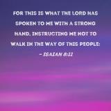 For this is what the LORD has spoken to me with a strong hand, instructing me not to walk in the way of this people: