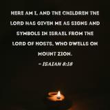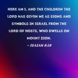 Here am I, and the children the LORD has given me as signs and symbols in Israel from the LORD of Hosts, who dwells on Mount Zion.
