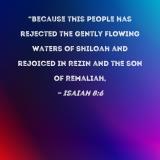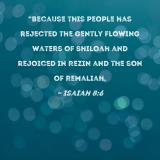 "Because this people has rejected the gently flowing waters of Shiloah and rejoiced in Rezin and the son of Remaliah,