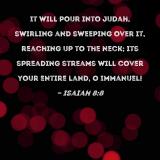 It will pour into Judah, swirling and sweeping over it, reaching up to the neck; its spreading streams will cover your entire land, O Immanuel!