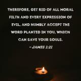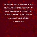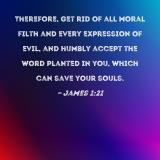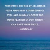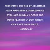 Therefore, get rid of all moral filth and every expression of evil, and humbly accept the word planted in you, which can save your souls.