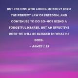 But the one who looks intently into the perfect law of freedom, and continues to do so--not being a forgetful hearer, but an effective doer--he will be blessed in what he does.