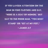 If you lavish attention on the man in fine clothes and say, "Here is a seat of honor," but say to the poor man, "You must stand" or "Sit at my feet,"