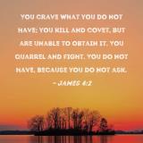 You crave what you do not have; you kill and covet, but are unable to obtain it. You quarrel and fight. You do not have, because you do not ask.