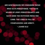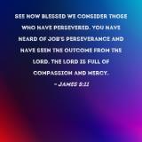 See how blessed we consider those who have persevered. You have heard of Job's perseverance and have seen the outcome from the Lord. The Lord is full of compassion and mercy.
