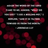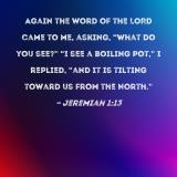 Again the word of the LORD came to me, asking, "What do you see?" "I see a boiling pot," I replied, "and it is tilting toward us from the north."