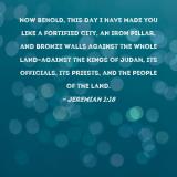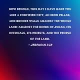Now behold, this day I have made you like a fortified city, an iron pillar, and bronze walls against the whole land--against the kings of Judah, its officials, its priests, and the people of the land.