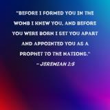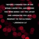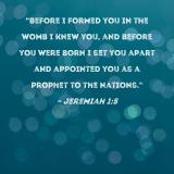 "Before I formed you in the womb I knew you, and before you were born I set you apart and appointed you as a prophet to the nations."