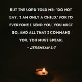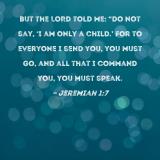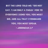 But the LORD told me: "Do not say, 'I am only a child.' For to everyone I send you, you must go, and all that I command you, you must speak.