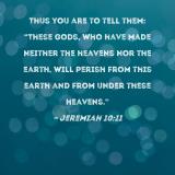 Thus you are to tell them: "These gods, who have made neither the heavens nor the earth, will perish from this earth and from under these heavens."