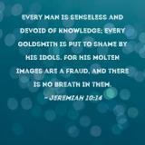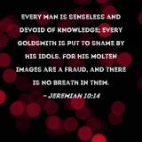 Every man is senseless and devoid of knowledge; every goldsmith is put to shame by his idols. For his molten images are a fraud, and there is no breath in them.