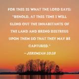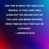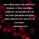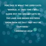 For this is what the LORD says: "Behold, at this time I will sling out the inhabitants of the land and bring distress upon them so that they may be captured."