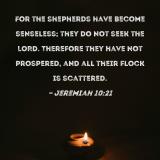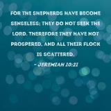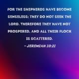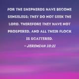 For the shepherds have become senseless; they do not seek the LORD. Therefore they have not prospered, and all their flock is scattered.