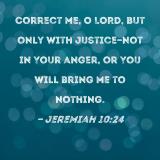 Correct me, O LORD, but only with justice--not in Your anger, or You will bring me to nothing.