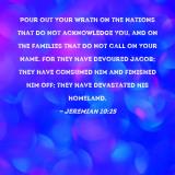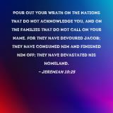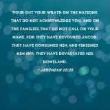 Pour out Your wrath on the nations that do not acknowledge You, and on the families that do not call on Your name. For they have devoured Jacob; they have consumed him and finished him off; they have devastated his homeland.