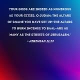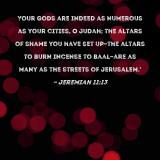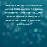 Your gods are indeed as numerous as your cities, O Judah; the altars of shame you have set up--the altars to burn incense to Baal--are as many as the streets of Jerusalem.'