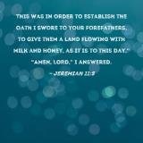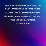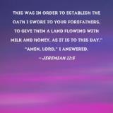 This was in order to establish the oath I swore to your forefathers, to give them a land flowing with milk and honey, as it is to this day." "Amen, LORD," I answered.