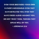Even your brothers--your own father's household--even they have betrayed you; even they have cried aloud against you. Do not trust them, though they speak well of you.