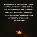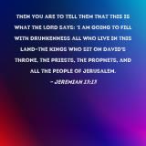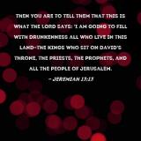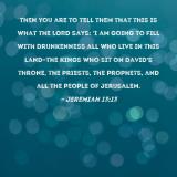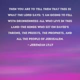 then you are to tell them that this is what the LORD says: 'I am going to fill with drunkenness all who live in this land--the kings who sit on David's throne, the priests, the prophets, and all the people of Jerusalem.