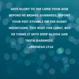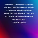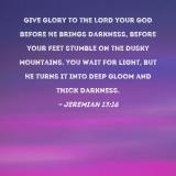 Give glory to the LORD your God before He brings darkness, before your feet stumble on the dusky mountains. You wait for light, but He turns it into deep gloom and thick darkness.