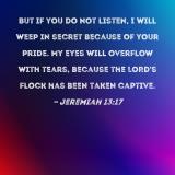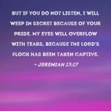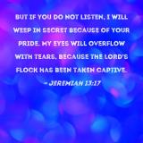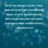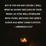 But if you do not listen, I will weep in secret because of your pride. My eyes will overflow with tears, because the LORD's flock has been taken captive.