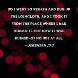So I went to Perath and dug up the loincloth, and I took it from the place where I had hidden it. But now it was ruined--of no use at all.
