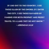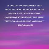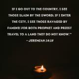 If I go out to the country, I see those slain by the sword; if I enter the city, I see those ravaged by famine! For both prophet and priest travel to a land they do not know.'"