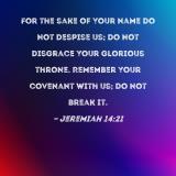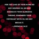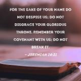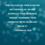 For the sake of Your name do not despise us; do not disgrace Your glorious throne. Remember Your covenant with us; do not break it.