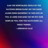 Can the worthless idols of the nations bring rain? Do the skies alone send showers? Is this not by You, O LORD our God? So we put our hope in You, for You have done all these things.