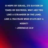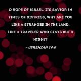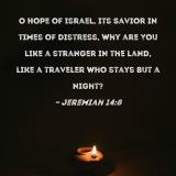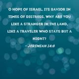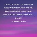 O Hope of Israel, its Savior in times of distress, why are You like a stranger in the land, like a traveler who stays but a night?