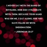 I never sat with the band of revelers, nor did I celebrate with them. Because Your hand was on me, I sat alone, for You have filled me with indignation.