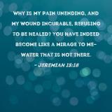 Why is my pain unending, and my wound incurable, refusing to be healed? You have indeed become like a mirage to me--water that is not there.