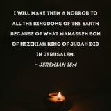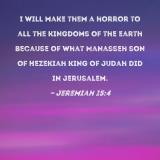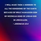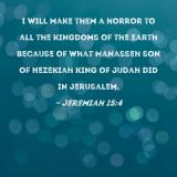 I will make them a horror to all the kingdoms of the earth because of what Manasseh son of Hezekiah king of Judah did in Jerusalem.