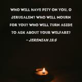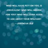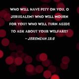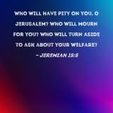 Who will have pity on you, O Jerusalem? Who will mourn for you? Who will turn aside to ask about your welfare?