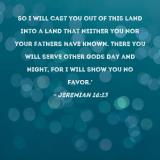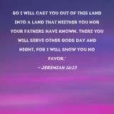 So I will cast you out of this land into a land that neither you nor your fathers have known. There you will serve other gods day and night, for I will show you no favor.'