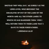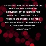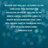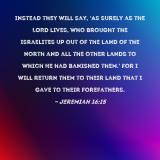 Pictures and Artwork Instead they will say, 'As surely as the LORD lives, who brought the Israelites up out of the land of the north and all the other lands to which He had banished them.' For I will return them to their land that I gave to their forefathers. |