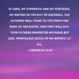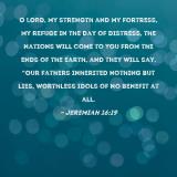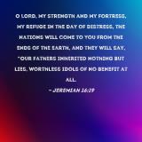 O LORD, my strength and my fortress, my refuge in the day of distress, the nations will come to You from the ends of the earth, and they will say, "Our fathers inherited nothing but lies, worthless idols of no benefit at all.