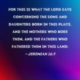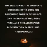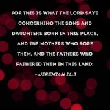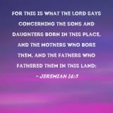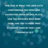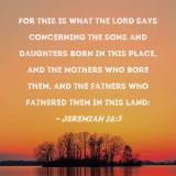 For this is what the LORD says concerning the sons and daughters born in this place, and the mothers who bore them, and the fathers who fathered them in this land:
