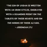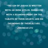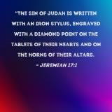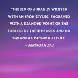 "The sin of Judah is written with an iron stylus, engraved with a diamond point on the tablets of their hearts and on the horns of their altars.