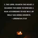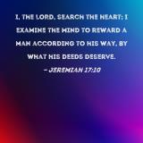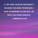 I, the LORD, search the heart; I examine the mind to reward a man according to his way, by what his deeds deserve.