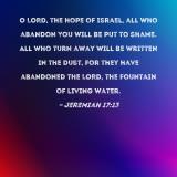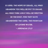 O LORD, the hope of Israel, all who abandon You will be put to shame. All who turn away will be written in the dust, for they have abandoned the LORD, the fountain of living water.