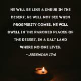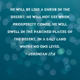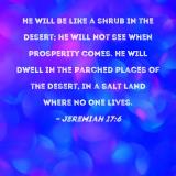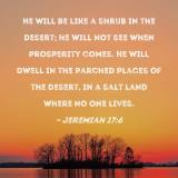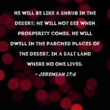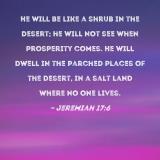 He will be like a shrub in the desert; he will not see when prosperity comes. He will dwell in the parched places of the desert, in a salt land where no one lives.
