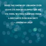 Does the snow of Lebanon ever leave its rocky slopes? Or do its cool waters flowing from a distance ever run dry?