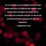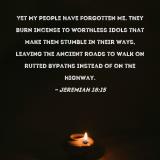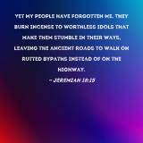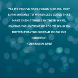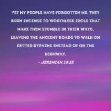 Yet My people have forgotten Me. They burn incense to worthless idols that make them stumble in their ways, leaving the ancient roads to walk on rutted bypaths instead of on the highway.