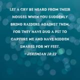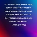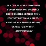 Let a cry be heard from their houses when You suddenly bring raiders against them, for they have dug a pit to capture me and have hidden snares for my feet.