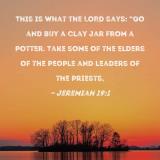 This is what the LORD says: "Go and buy a clay jar from a potter. Take some of the elders of the people and leaders of the priests,