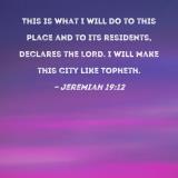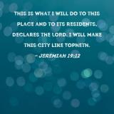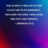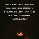 This is what I will do to this place and to its residents, declares the LORD. I will make this city like Topheth.