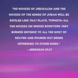 The houses of Jerusalem and the houses of the kings of Judah will be defiled like that place, Topheth--all the houses on whose rooftops they burned incense to all the host of heaven and poured out drink offerings to other gods."